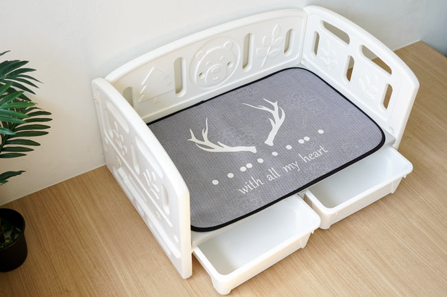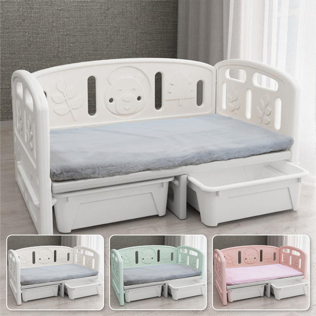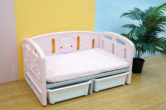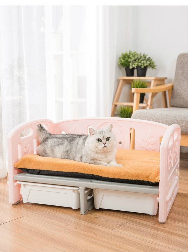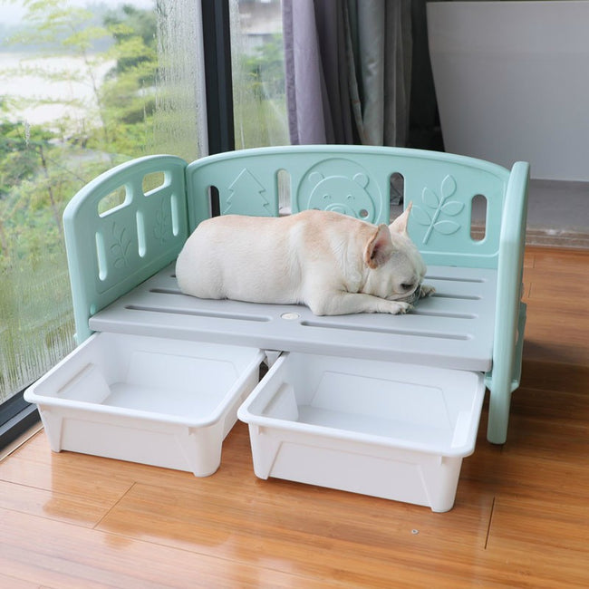 ใต้เตียงมีช่องเก็บของขนาดกลาง 2 กล่อง เหมาะสำหรับการเก็บของเล่นและอุปกรณ์เลี้ยงสัตว์ต่างๆ สะดวกสบาย ให้การจัดเก็บเป็นเรื่องง่าย ใช้พื้นที่ได้อย่างคุ้มค่า